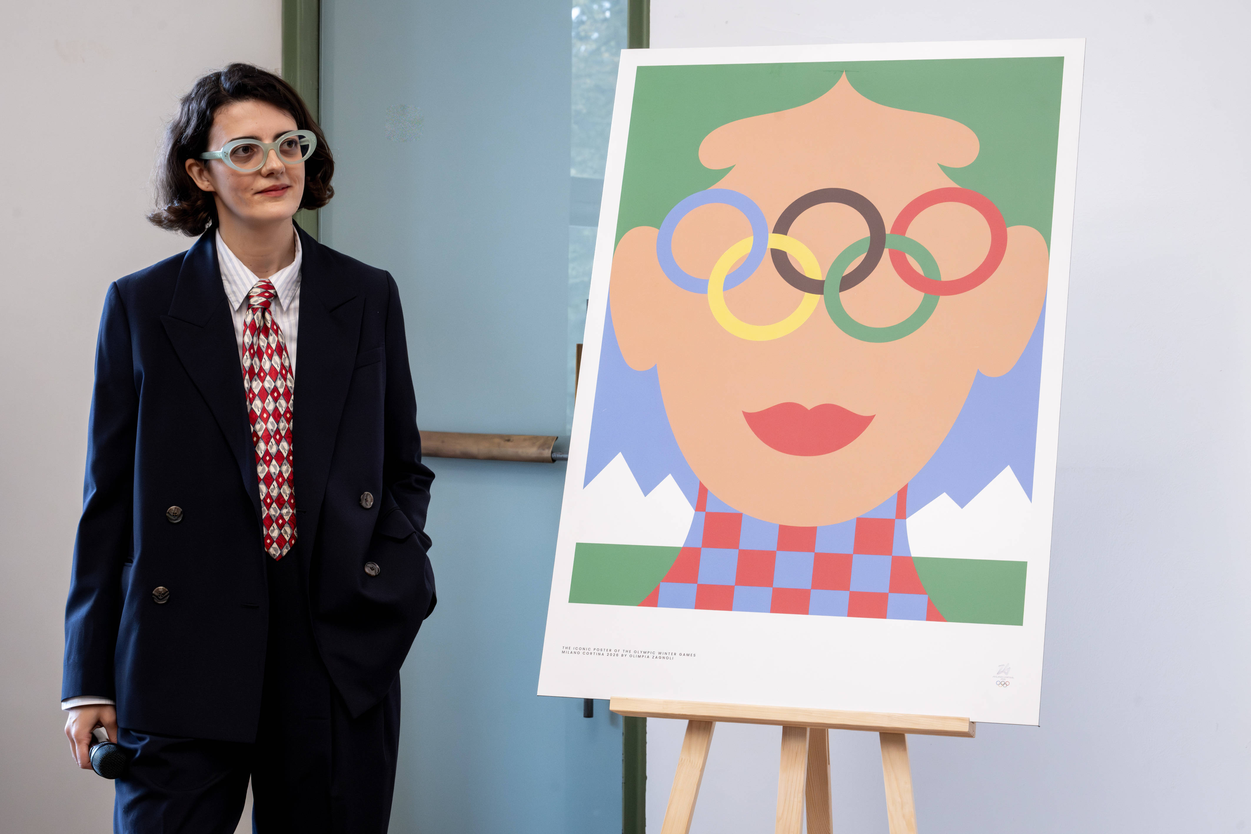 10月22日,艺术家奥林匹娅·扎尼奥利在发布会中讲解自己创作的冬奥会海报。当日,2026年米兰-科尔蒂纳冬奥会和冬残奥会官方标志性海报在米兰三年展艺术中心正式亮相。新华社发