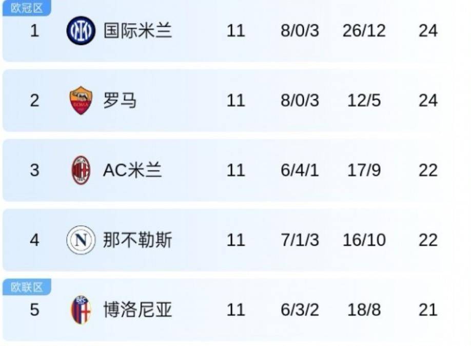 在意甲第11轮比赛中,米兰客场2比2踢平了帕尔马,只拿到了1分。而国米则2比0击败了拉齐奥,豪取三连胜,成功登顶积分榜!罗马跟在后面,和国米同分排在第二。米兰和那不勒斯则落后两分,暂时排在后面。值得一提的是,博洛尼亚这赛季表现非常抢眼,像黑马一样冲进了前几名,真的挺厉害的。