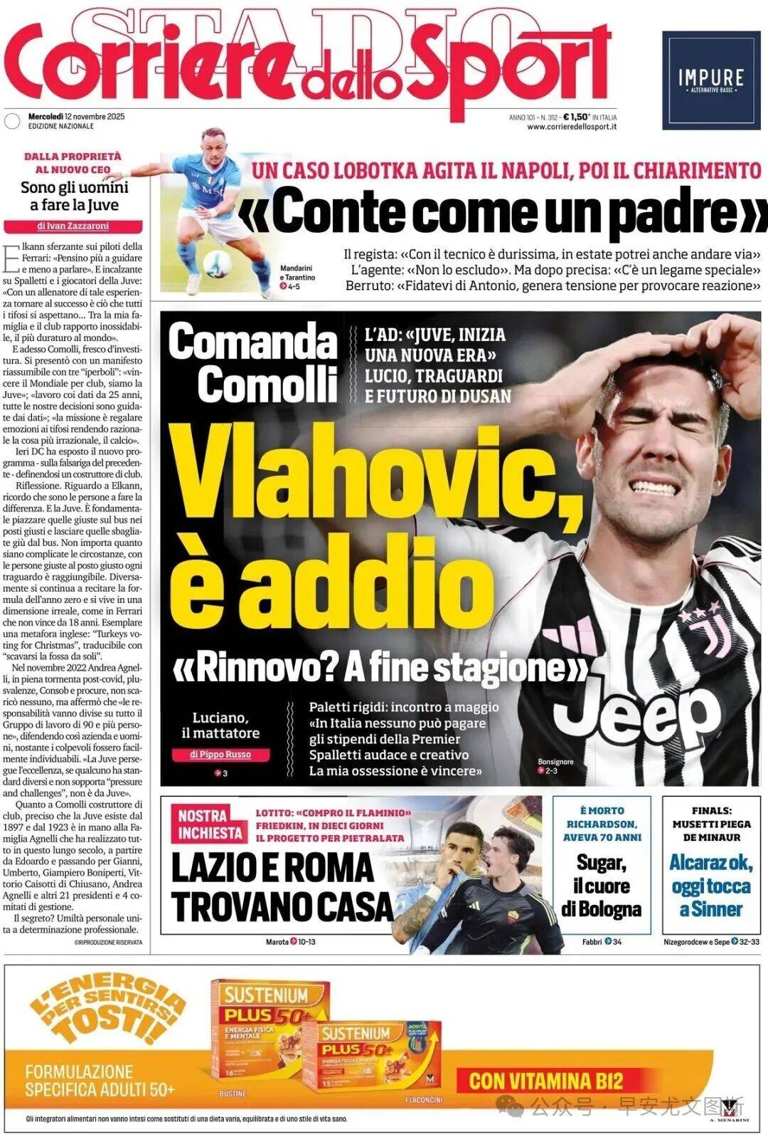 1、弗拉霍维奇的告别,“续约,在赛季结束时。”科莫利掌控俱乐部,CEO:“尤文,一个新时代开始了。”斯帕莱蒂,目标和杜桑的未来。严格的限制:5月份会面。“没有人能像英超俱乐部那样支付薪水。斯帕莱蒂大胆而富有创造力。我的痴迷是赢球。”