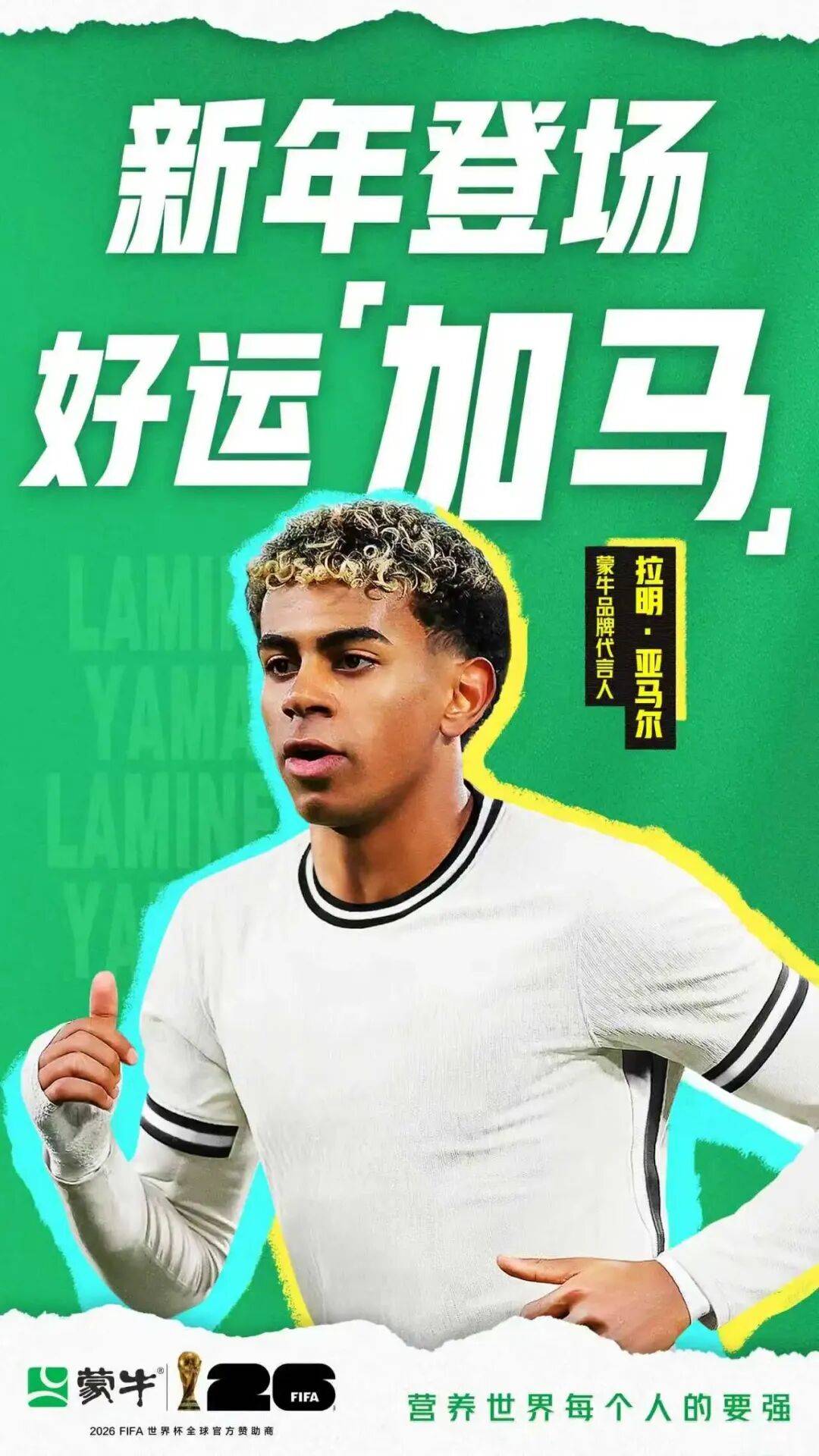 2026年1月1日,蒙牛官方宣布,西班牙球星亚马尔成为其品牌代言人。2026年美加墨世界杯的脚步日益临近,亚马尔有望在世界杯舞台上闪耀。