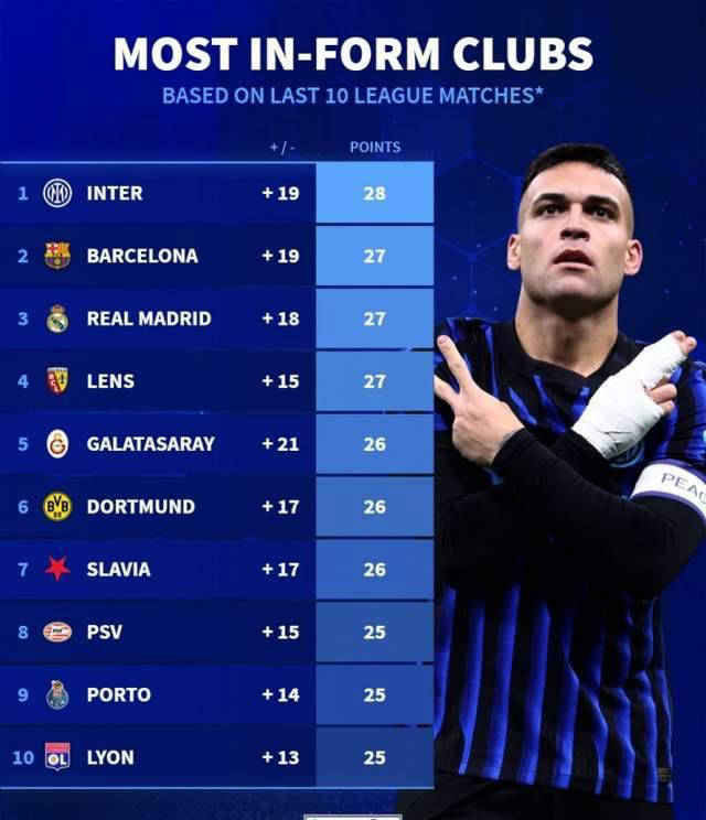德国转会市场公布了欧洲前十大联赛球队最近10轮比赛的积分排名,国际米兰以28分的成绩高居榜首,彰显出该队近期恐怖的稳定性和强大竞争力。紧随其后的是西班牙豪门巴塞罗那和皇家马德里,二者均以27分并列第二名,同时法国朗斯同样获得了27分。国米在这份排名中独占鳌头,充分印证了球队当前强势掠夺积分的出色表现,士气正盛,也为冲击各项赛事目标奠定了坚实基础。返回搜狐,查看更多